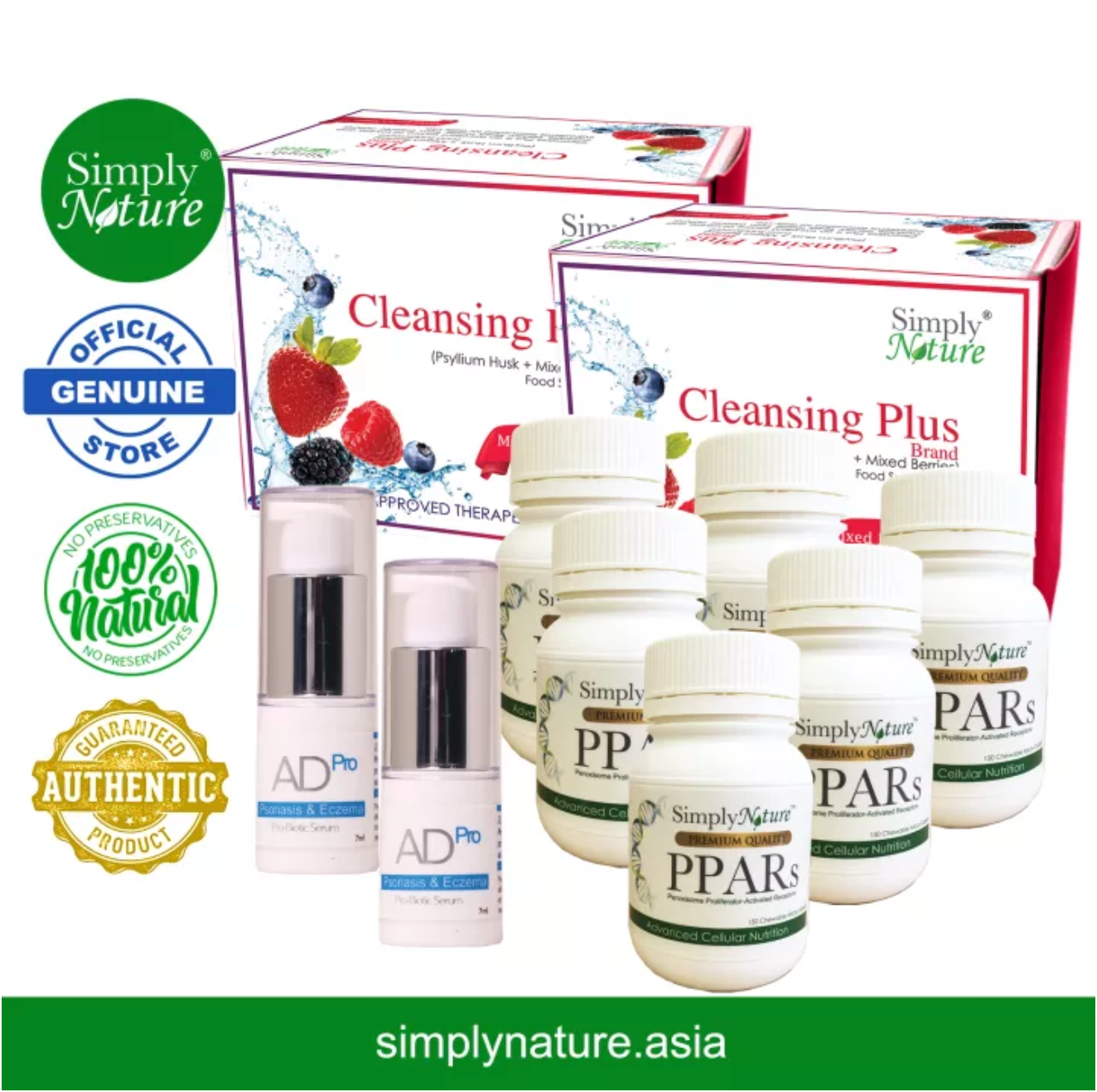 Mild Skin Disease - both SUPERFOOD PPARs Tablets, Cleansing Plus & ADPro Serum for Psoriasis, Eczema, Anti-Inflammation, Auto Immune Diseases, Immune System Activator & Booster, Natural Management Skin Issues, Acne by SimplyNature.